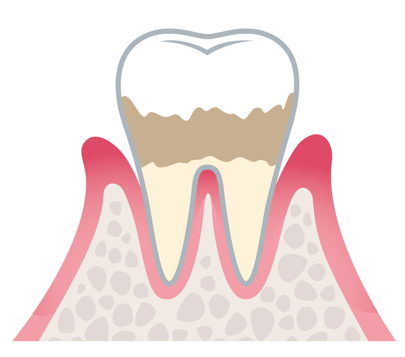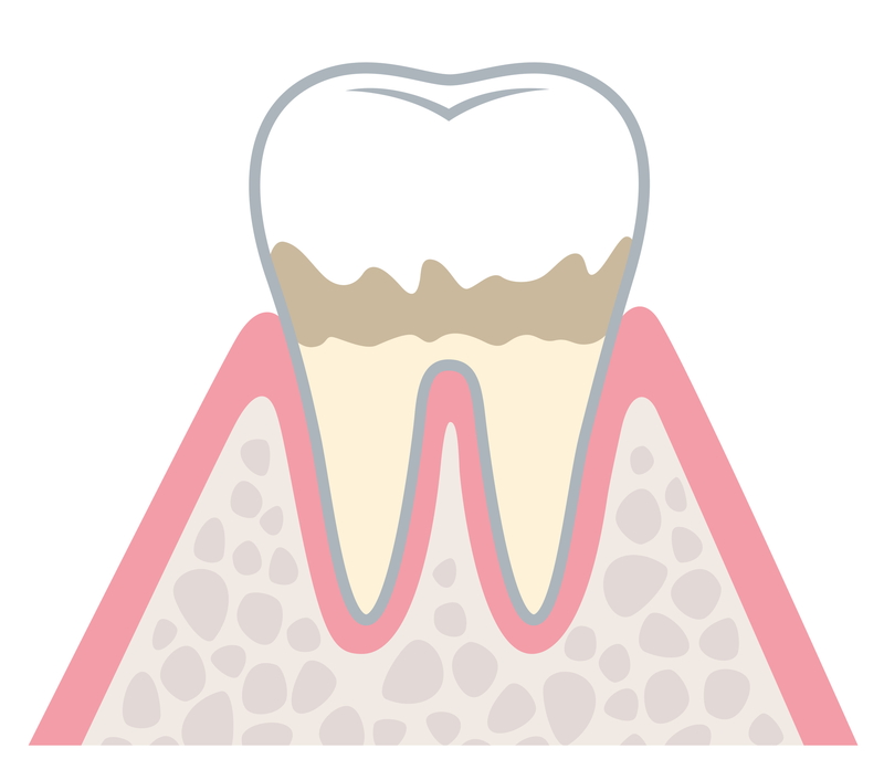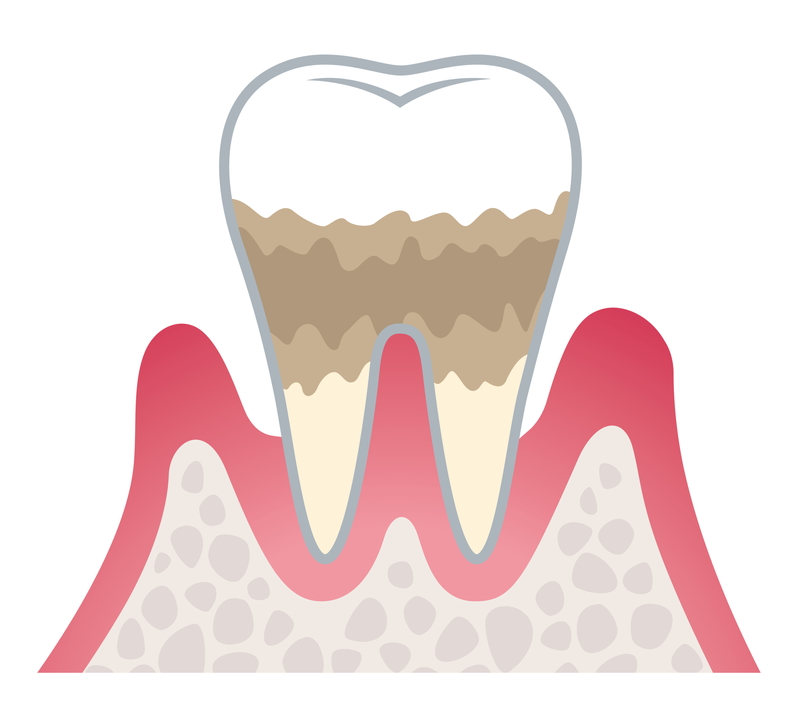 歯周病の主な原因は、歯垢と歯石です。歯石とは、歯垢が長い間歯の表面に留まり、唾液の成分と結合して固まったものです。一度できてしまうと、歯ブラシでは絶対に取れません。
